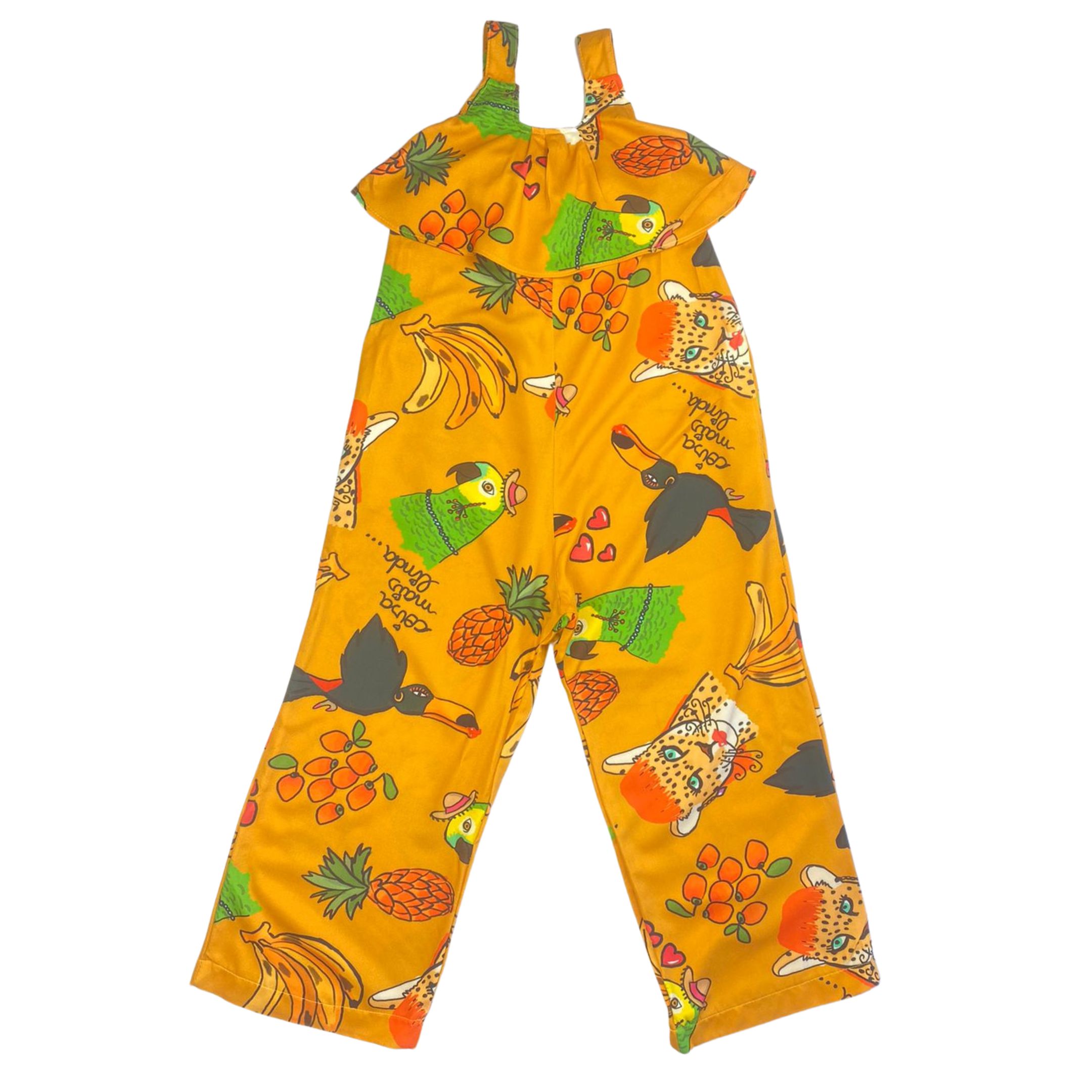 Macacão com Babado em estampa excusiva!! Fabricada em tecido 100% viscose. Mais uma opção incrível para sua coleção.