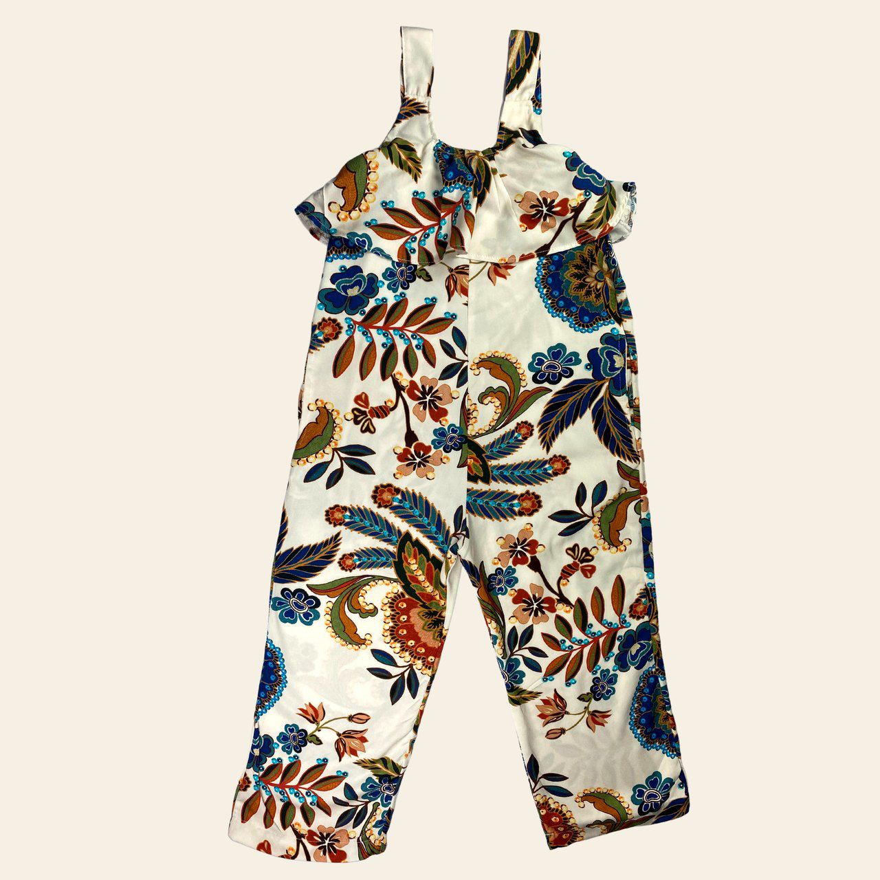 Macacão com Babado em estampa excusiva!! Fabricada em tecido 100% viscose. Mais uma opção incrível para sua coleção.