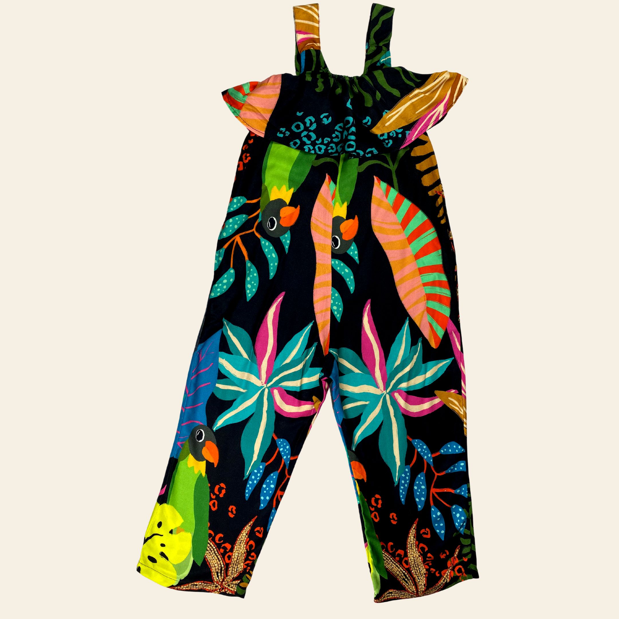 Macacão com Babado em estampa excusiva!! Fabricada em tecido 100% viscose. Mais uma opção incrível para sua coleção.